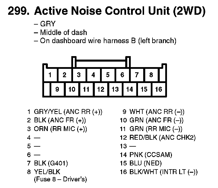Active Noise Control Unit Connector For Inputs And Outputs (2WD):