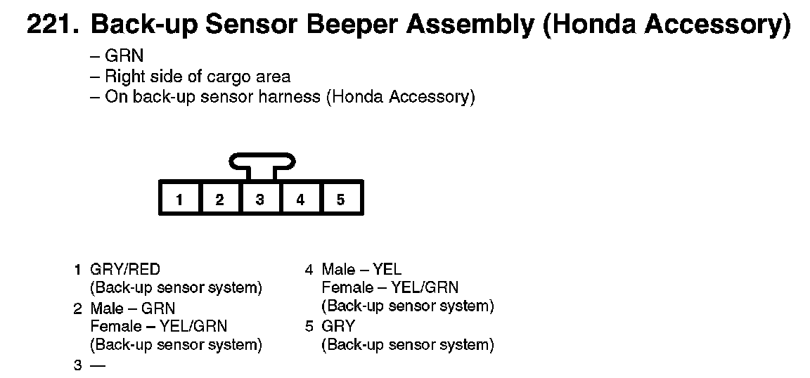 221. Back-up Sensor Beeper Assembly (Honda Accessory):