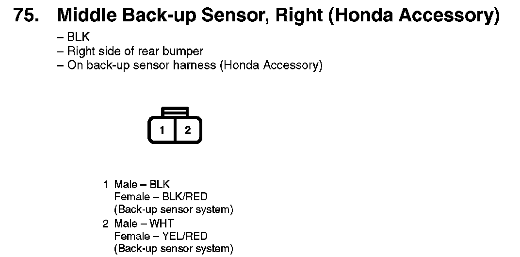 75. Middle Back-up Sensor, Right (Honda Accessory):