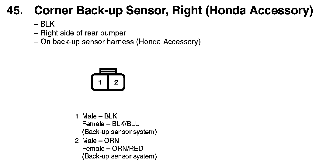 45. Corner Back-up Sensor, Right (Honda Accessory):