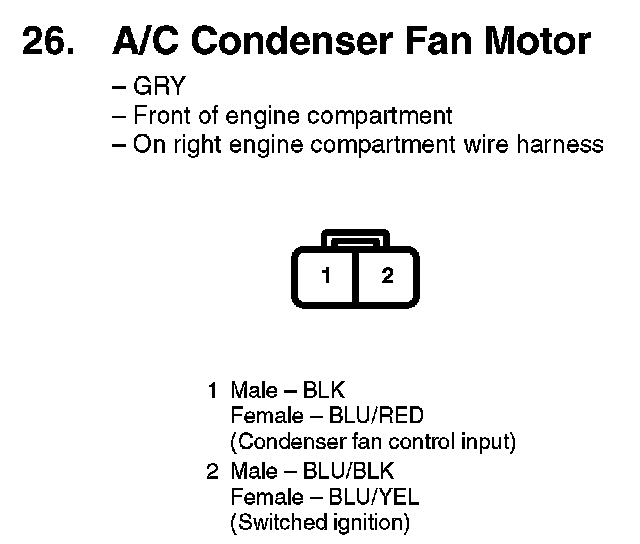 26. A/C Condenser Fan Motor: