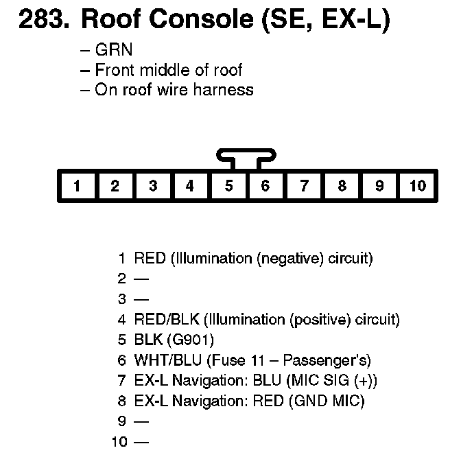 283. Roof Console (SE, EX-L):