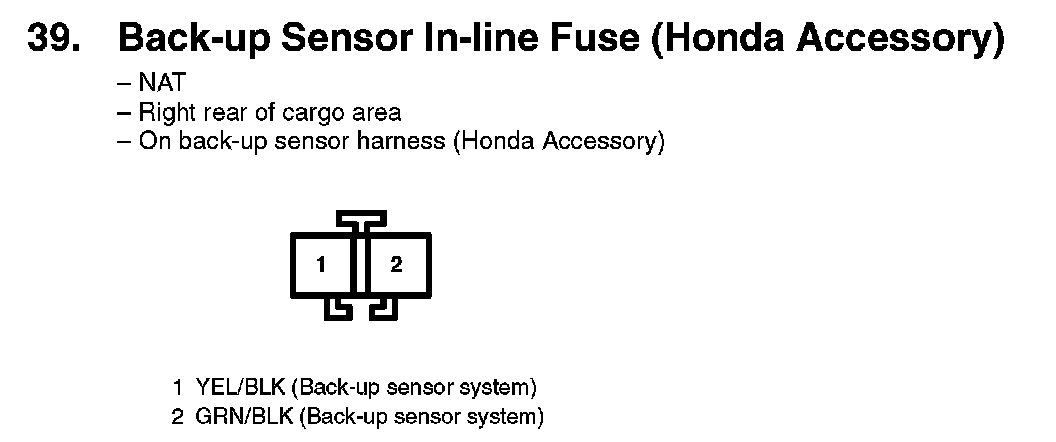 39. Back-up Sensor In-line Fuse (Honda Accessory):