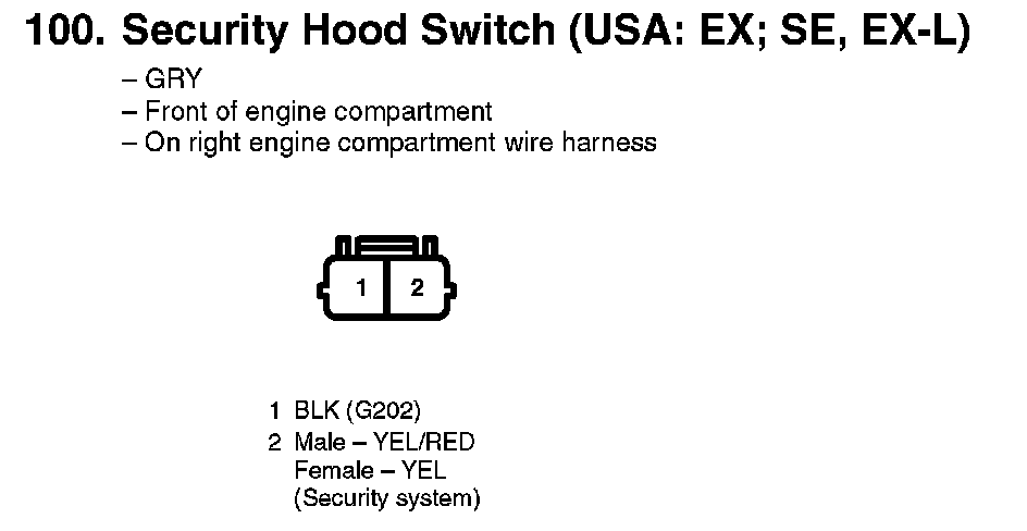 100. Security Hood Switch (USA: EX; SE, EX-L):