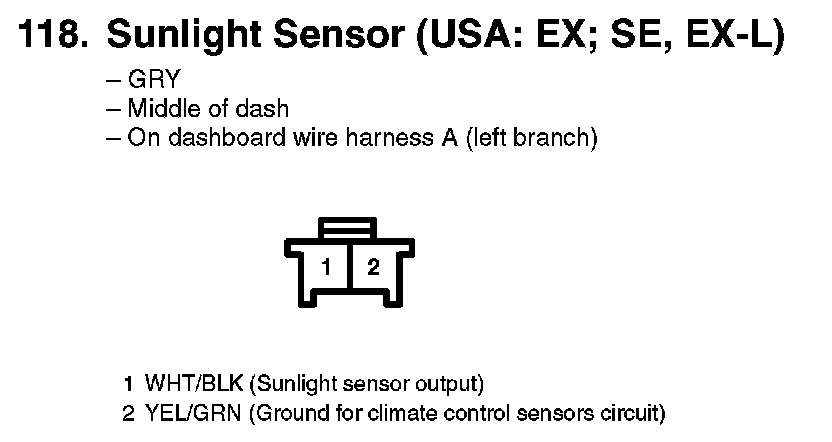 118. Sunlight Sensor (USA: EX; SE, EX-L):