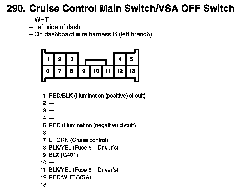 290. Cruise Control Main Switch/VSA OFF Switch: