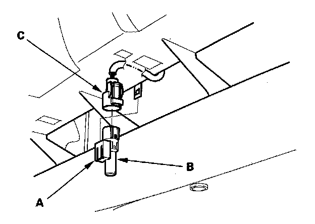 Outside Air Temperature Sensor Replacement1. Lift the tab (A) to release the lock, and remove the outside air temperature sensor (B) from the back of the front bumper beam. Disconnect the 2P connector (C) from the outside air temperature sensor.
