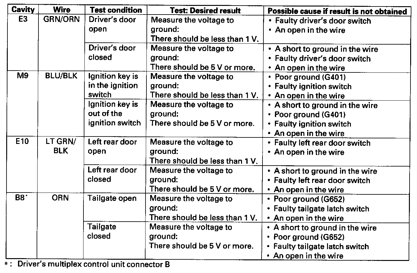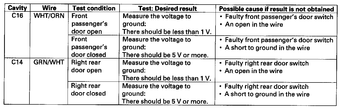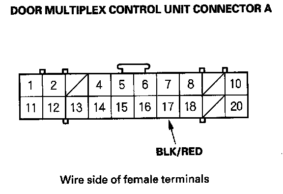 12. Reconnect the connector to the door multiplex control unit, and make the input test at the connector.