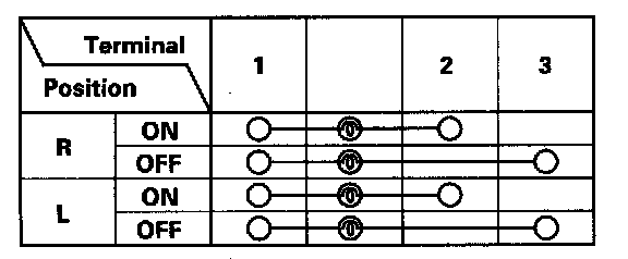 5. Check for continuity between the terminals in each switch position according to the table.