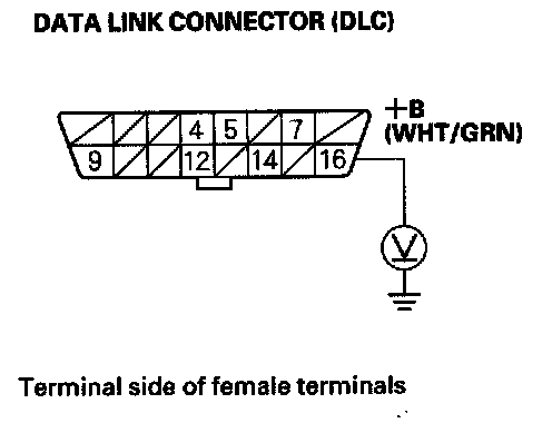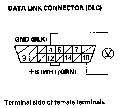 3. Measure voltage between DLC terminals No. 5 and No. 16.