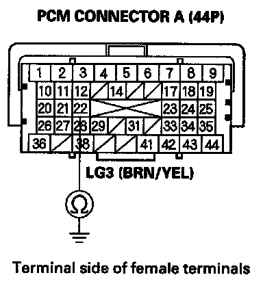 7. Check for continuity between PCM connector terminal A22 and body ground.
