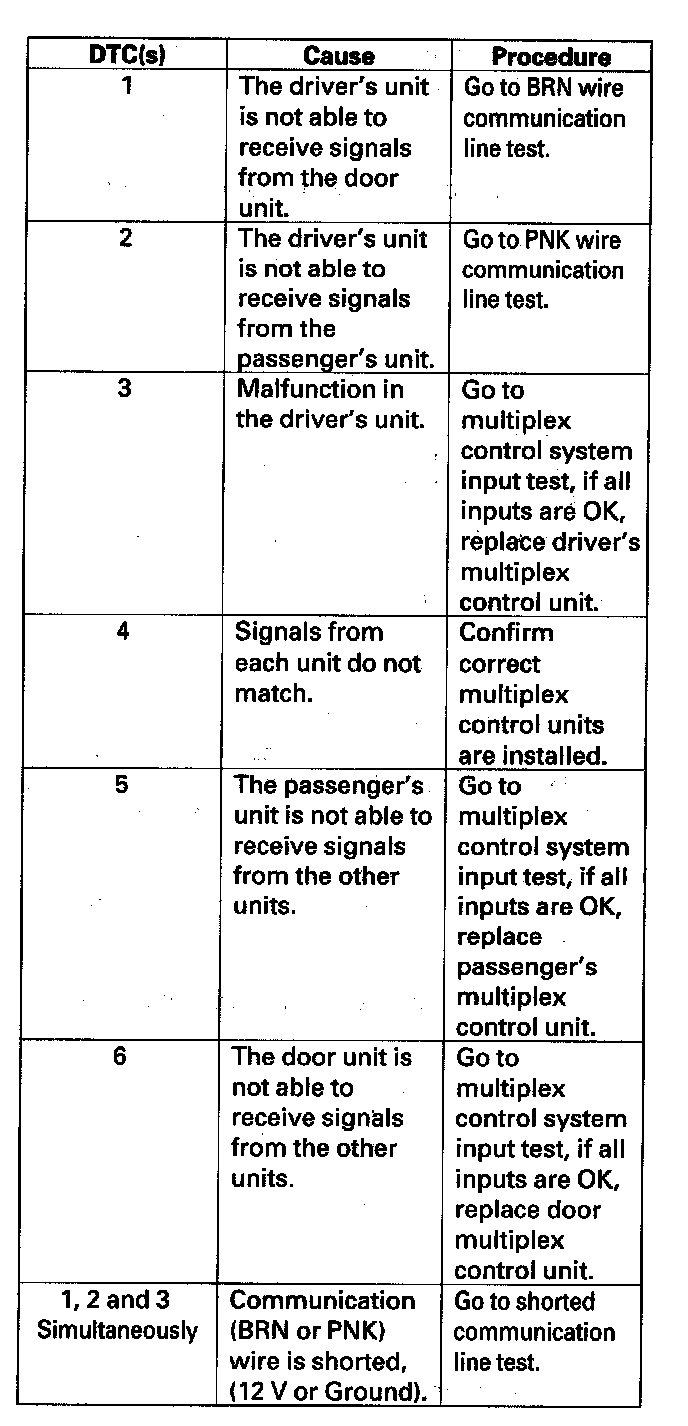 Mode 1 is a communication line and CPU self test. If a problem occurs on a communication wire or with an individual control unit the multiplex system will store a DTC as long as the fault is still present.