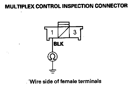 14. Check for continuity between the No.1 terminal of the multiplex control inspection connector and body ground.