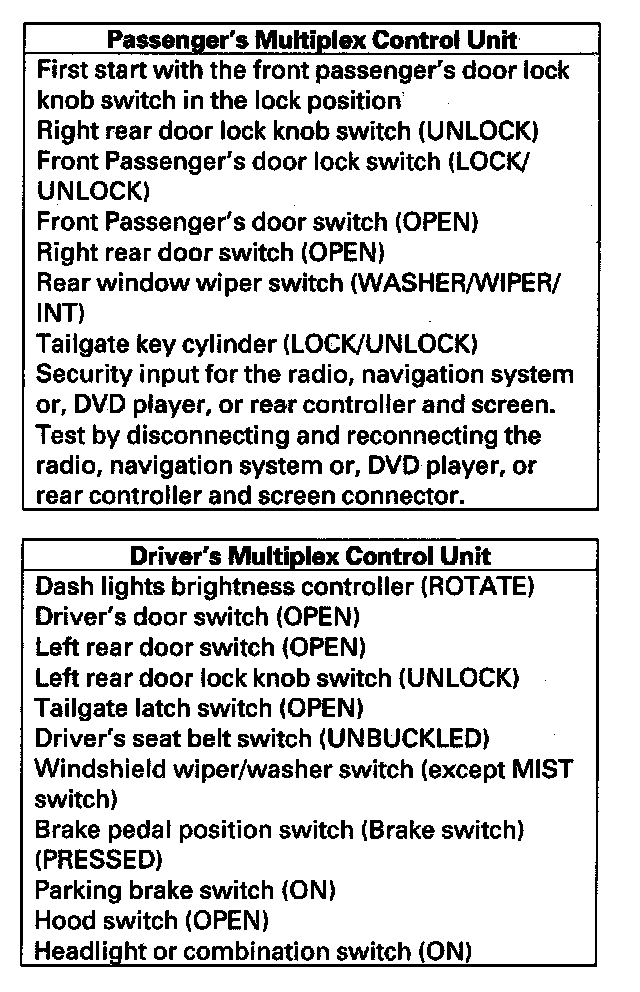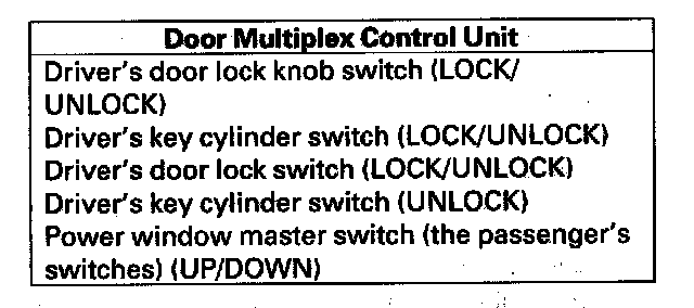 - When testing the door lock knob switches, make sure all three passenger doors are locked. After unlocking the door, make sure to return the door lock knob switch to the lock position, otherwise the test results will be inaccurate.