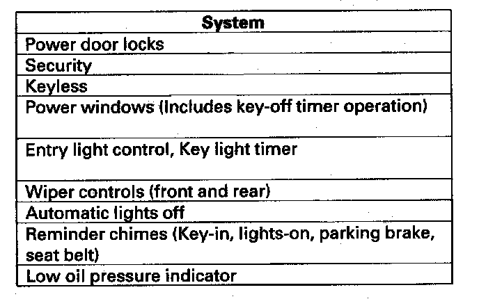 Mode 2 is an easy way to identify a problem circuit with out having to test the circuit with a DVOM. Mode 2 will confirm a switch/circuit is working by flashing the ignition key light and sounding the beeper as the circuit is used. The multiplex control system will confirm inputs as they are grounded except for the following circuits: