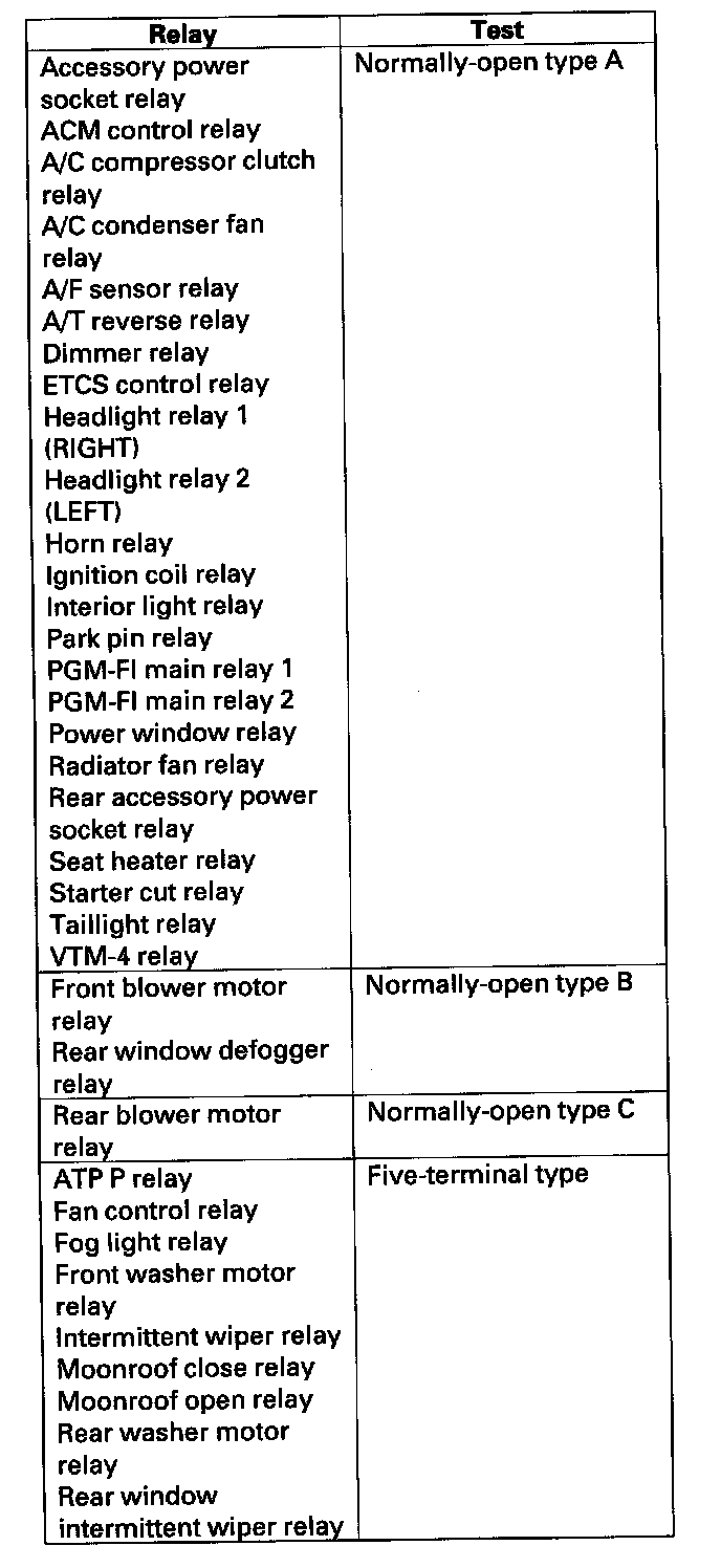NOTE: For the turn signal/hazard relay input test, refer to Lighting and Horns.