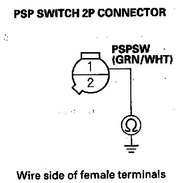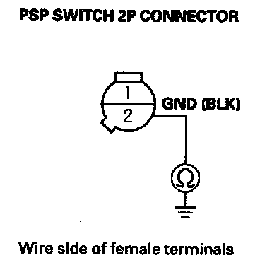 13. Check for continuity between PSP switch 2P connector terminal No. 1 and body ground.