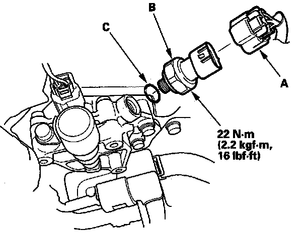 Install the parts in the reverse order of removal with a new O-ring (C).