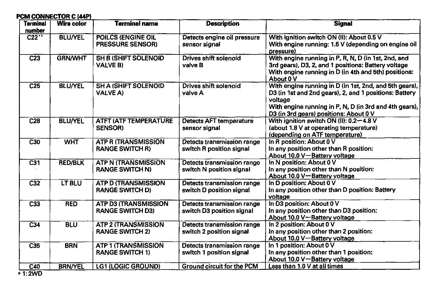 PCM A/T Control System Inputs and Outputs (Part 2):