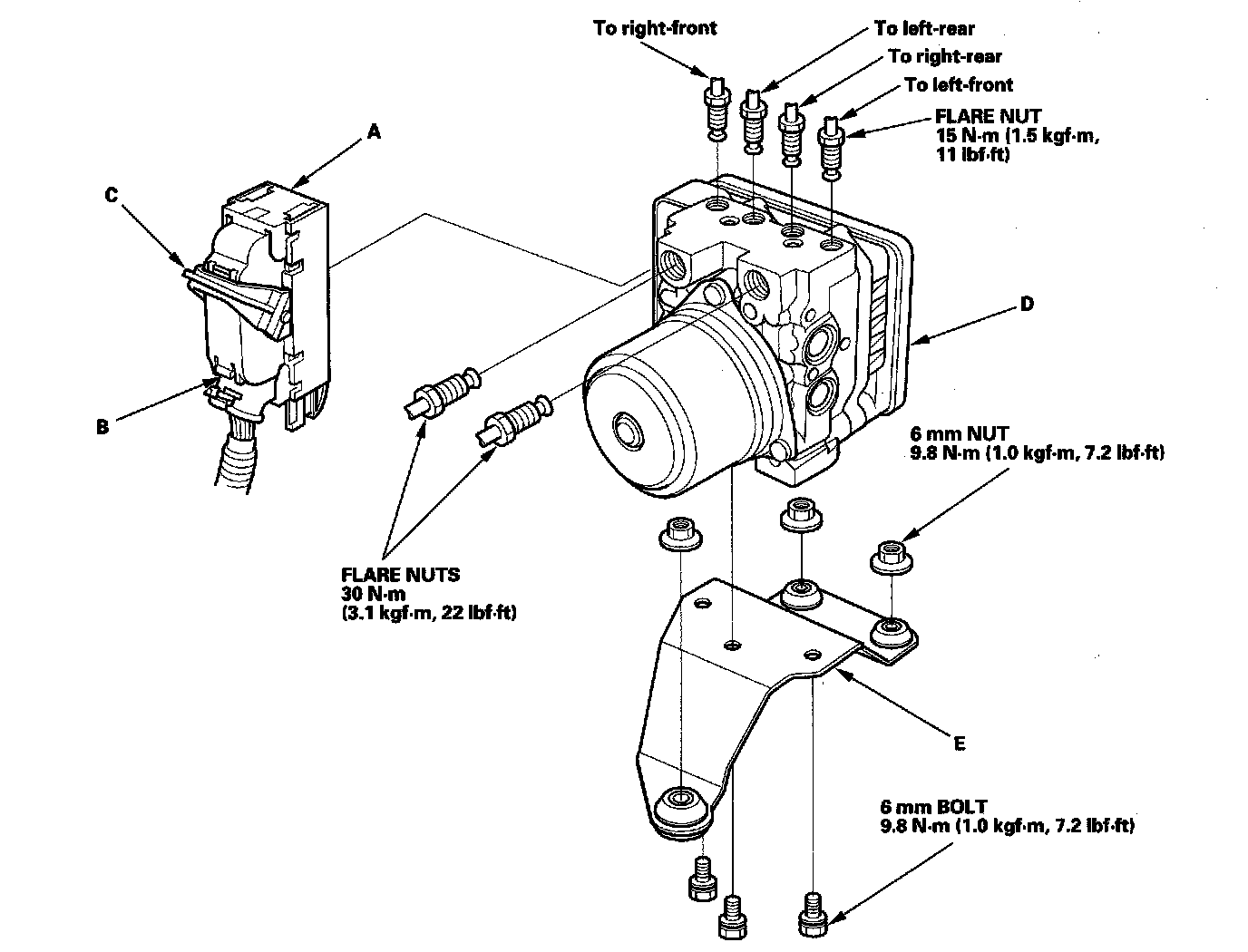 3. Reconnect the six brake lines, then tighten the flare nuts to the specified torque.