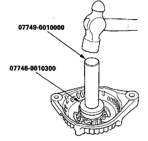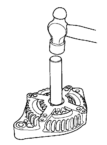 12. Install a new front bearing in the drive end housing with a hammer, the handle driver, and attachment.