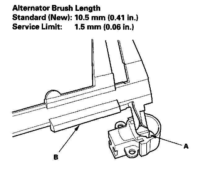 - If either brush is shorter than the service limit, replace the brush holder assembly.