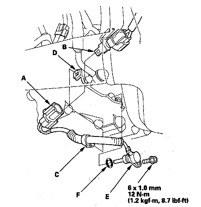 6. Install a new O-ring (F) on the new ATF temperature sensor, and install the ATF temperature sensor.