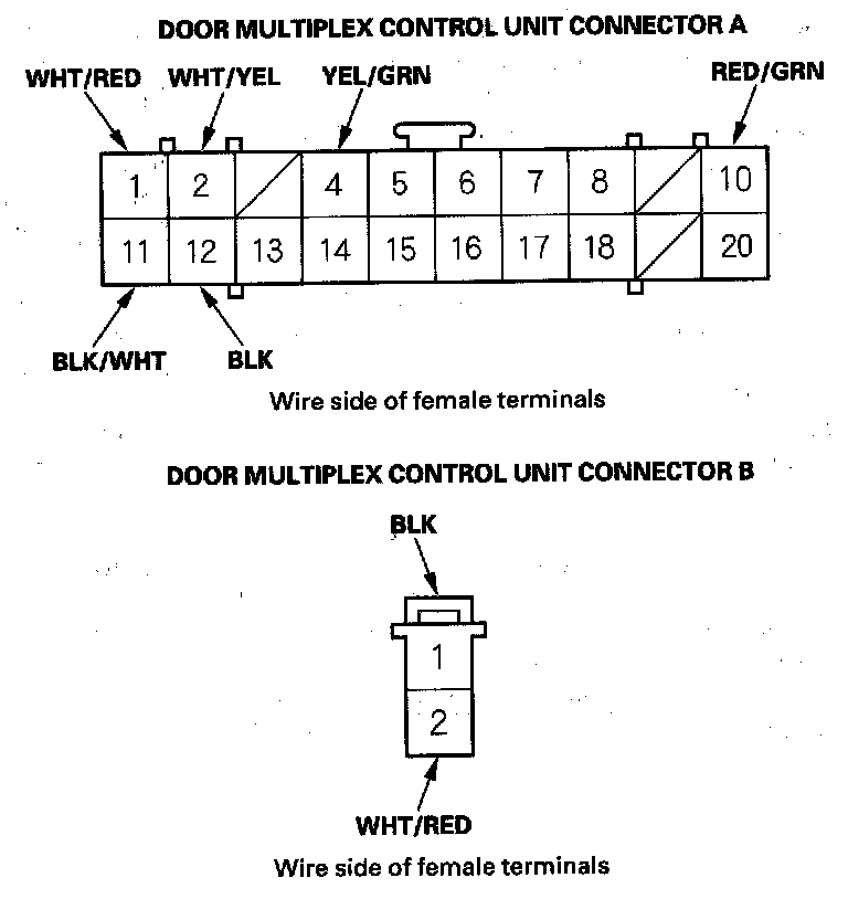 12. Reconnect the connector to the door multiplex control unit, and make these input tests at the connectors.