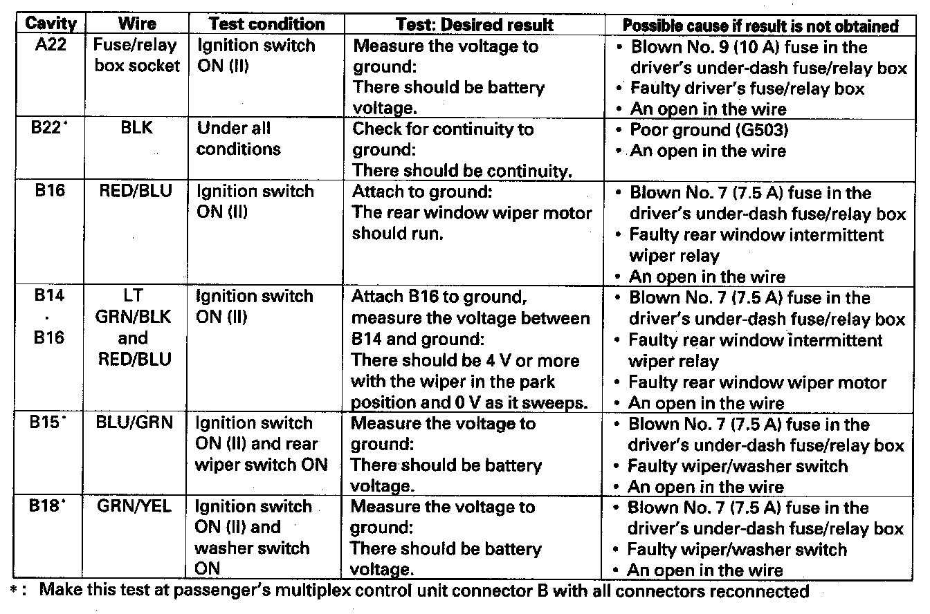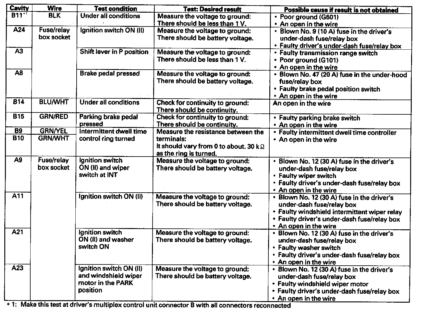 1. Before testing the wiper/washer control functions, troubleshoot the multiplex control system.