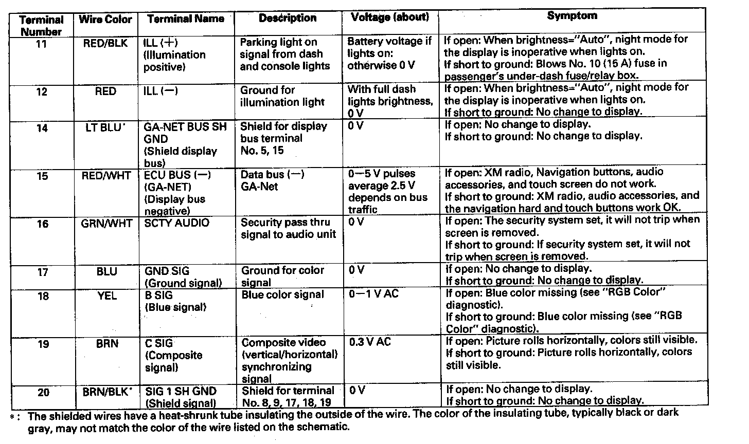 Navigation Display Unit Inputs And Outputs For The 20P Connector (Part 2):