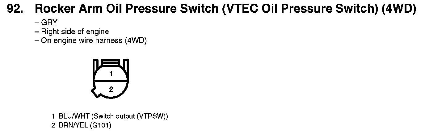 92. Rocker Arm Oil Pressure Switch (VTEC Oil Pressure Switch) (4WD):