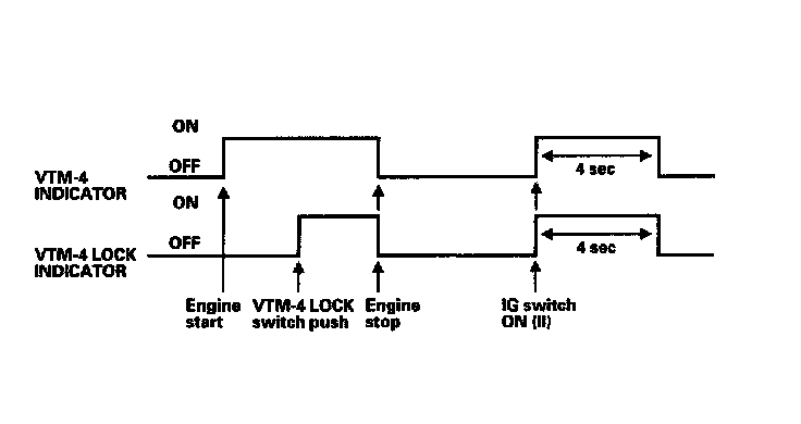 4. Turn the ignition switch ON (II) (the VTM-4 indicator and the VTM-4 LOCK indicator both come on for 4 seconds, then go off). The VTM-4 control unit is initialized.