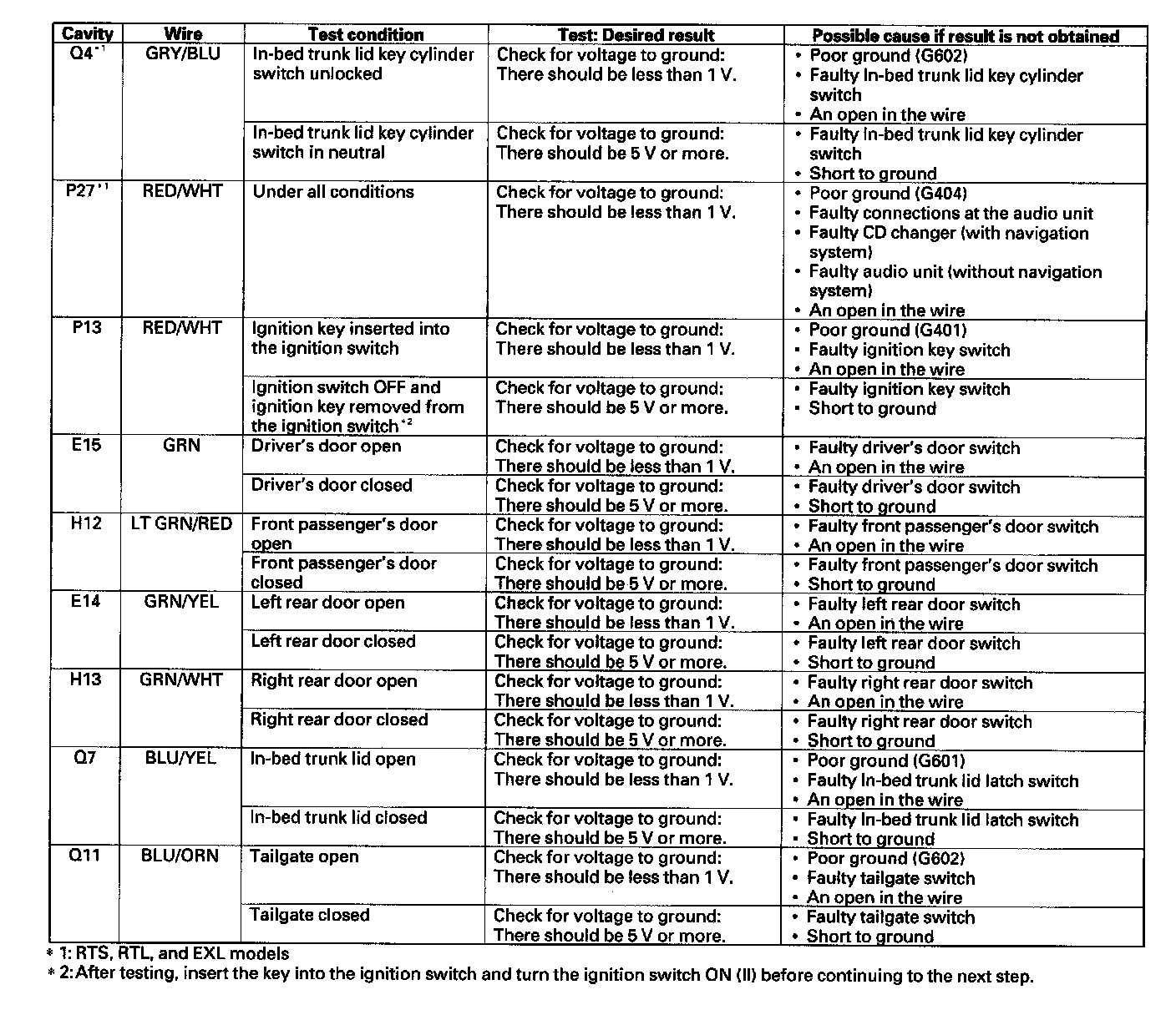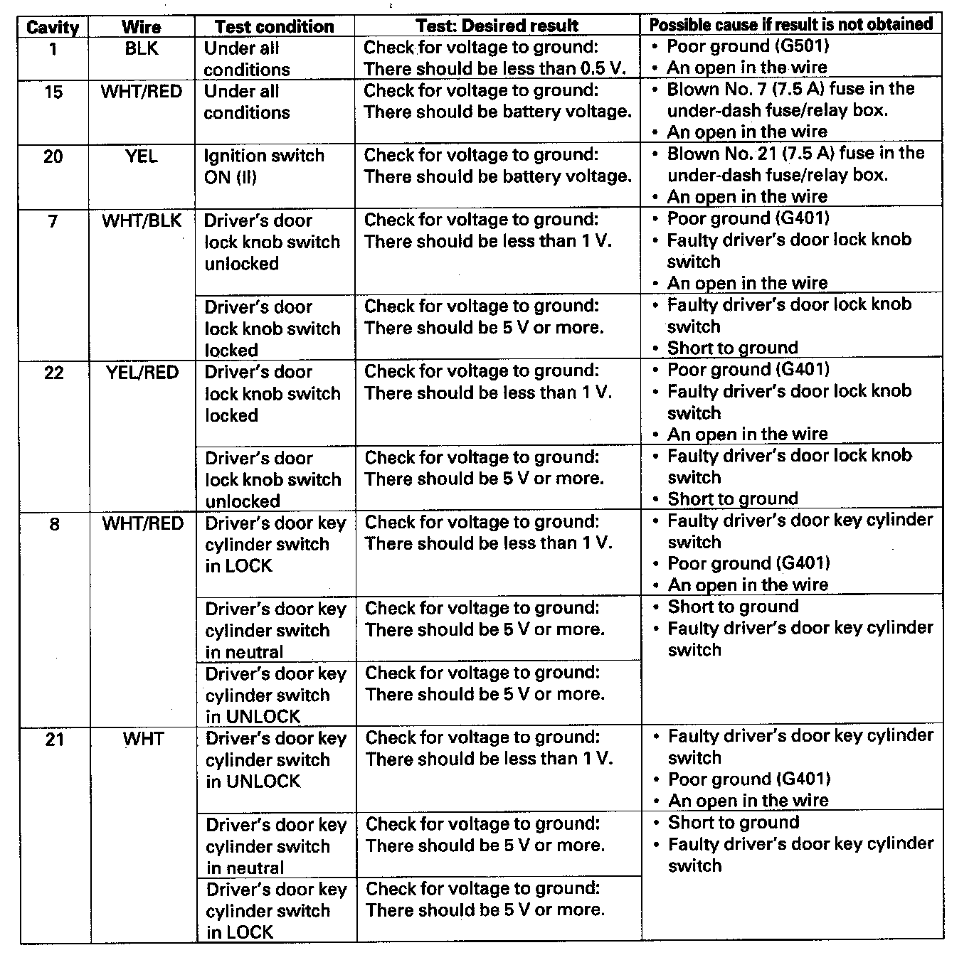 Control Unit Input TestNOTE: Before troubleshooting the keyless entry/security control system, troubleshoot the multiplex integrated control system first using B-CAN System Diagnosis Test Mode A.