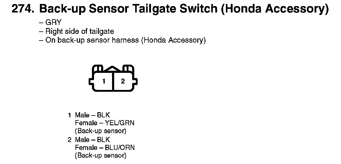 274. Back-up Sensor Tailgate Switch (Honda Accessory):