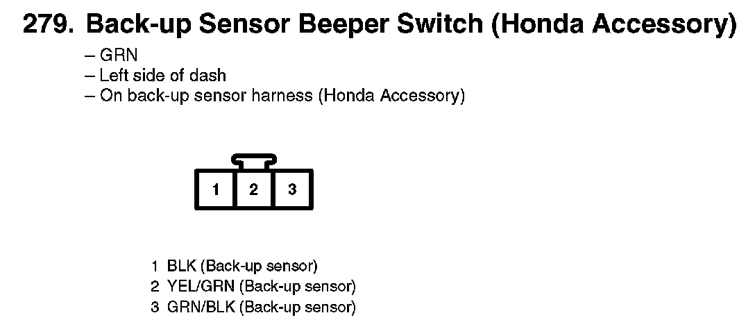 279. Back-up Sensor Beeper Switch (Honda Accessory):
