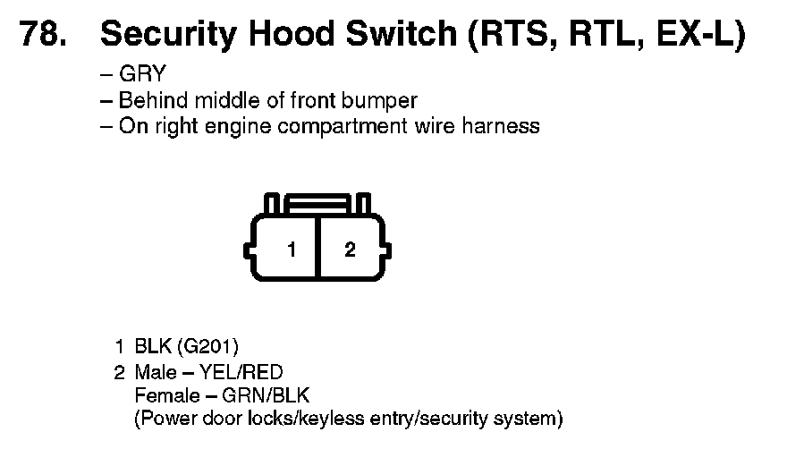78. Security Hood Switch (RTS, RTL, EX-L):