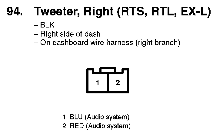 94. Tweeter, Right (RTS, RTL, EX-L):