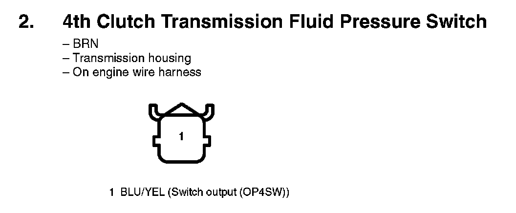 2. 4th Clutch Transmission Fluid Pressure Switch: