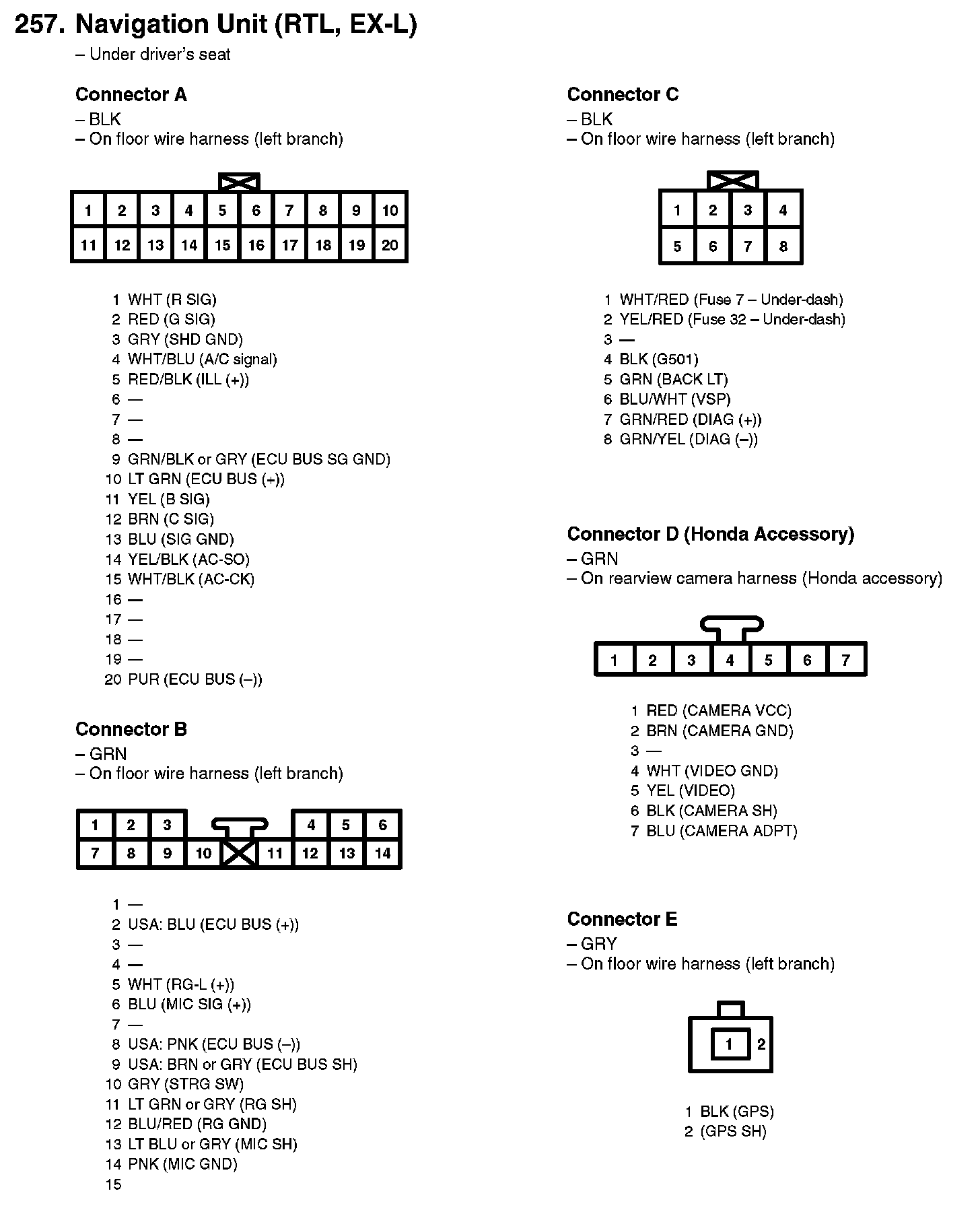 Navigation Unit Inputs And Outputs For Connector A (20P) Part 2: