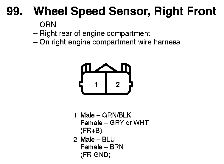 99. Wheel Speed Sensor, Right Front: