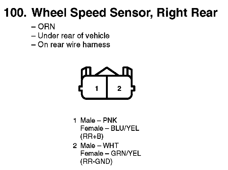 100. Wheel Speed Sensor, Right Rear: