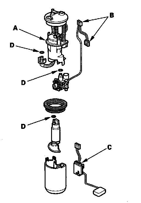4. Install the parts in the reverse order of removal with new O-rings (D). When installing the fuel tank unit, align the marks on the unit and the fuel tank.