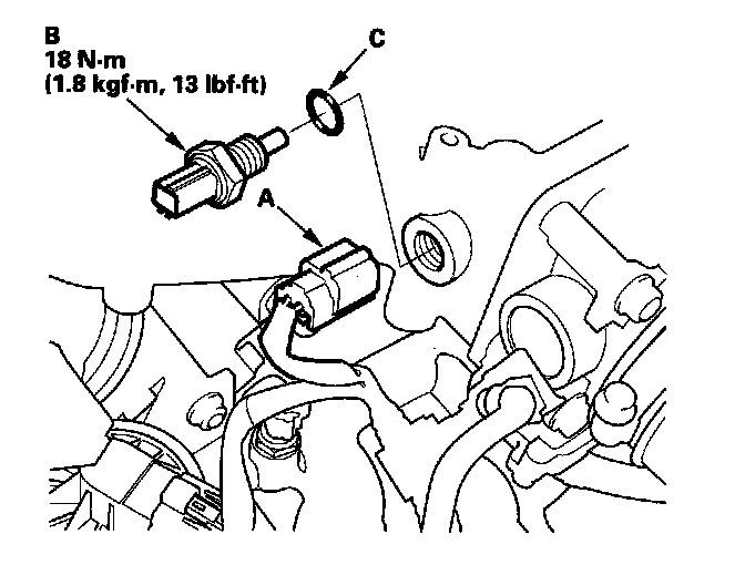 4. Install the parts in the reverse order of removal with a new O-ring (C).