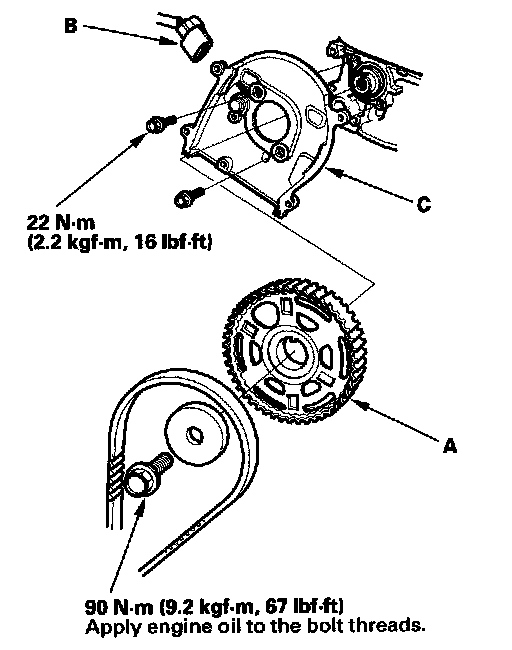3. Disconnect the CMP sensor connector (B), then remove the back cover (C).