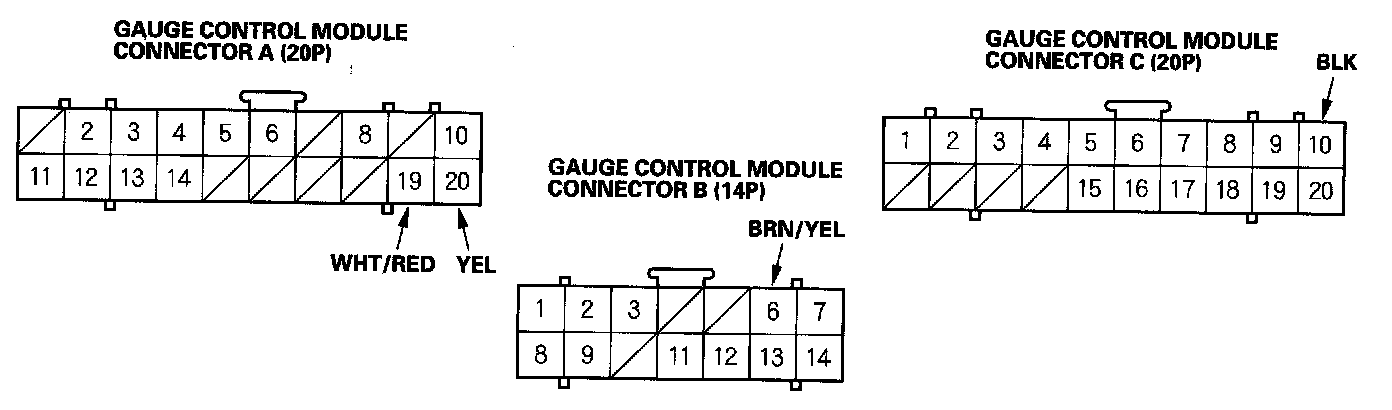 6. Reconnect connectors A and C to the gauge control module, and make these input tests at the connector.