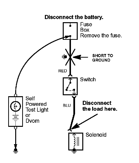 Testing for a short with a Self-Powered Test Light or DVOM