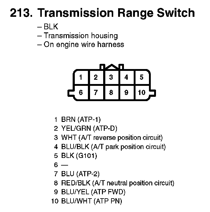 213. Transmission Range Switch: