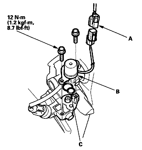 3. Install the parts in the reverse order of removal with a new O-ring (C).