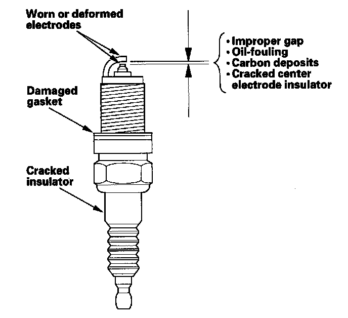 Spark Plug Inspection1. Remove the spark plugs and inspect the electrodes and the ceramic insulator.