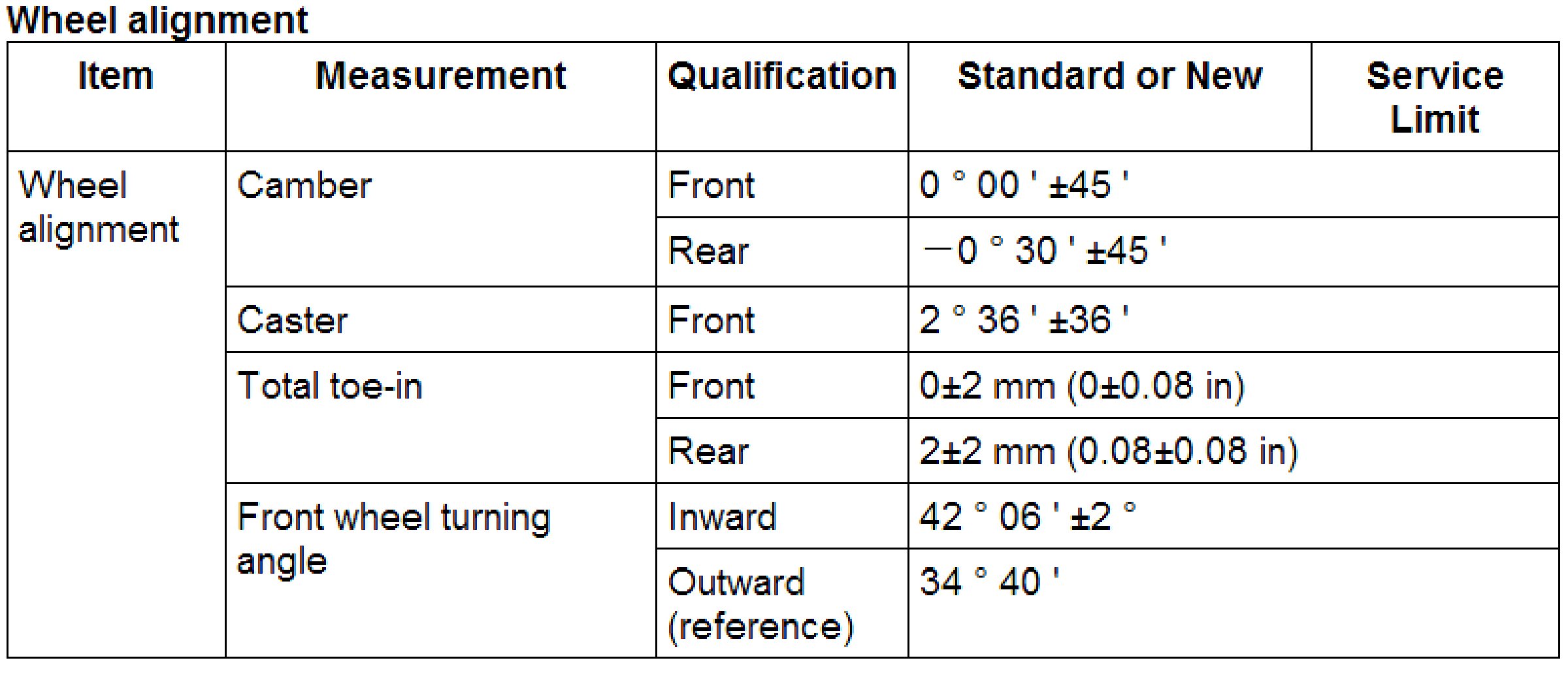 Wheel Alignment Specifications